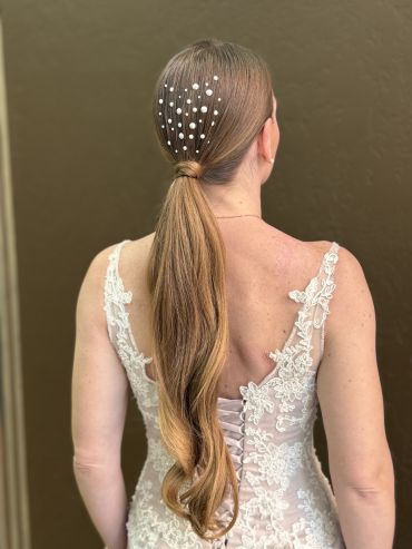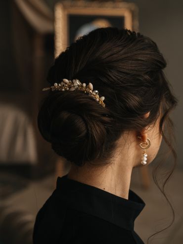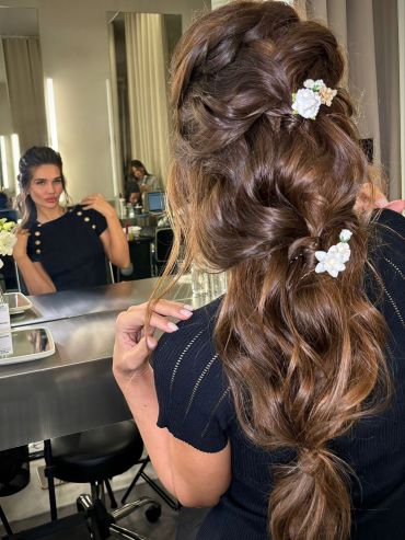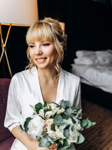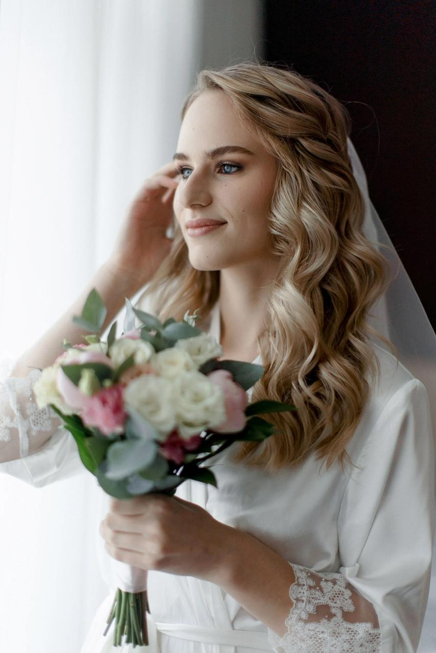 - Подберу вам свадебную прическу, макияж и помогу с выбором аксессуаров.