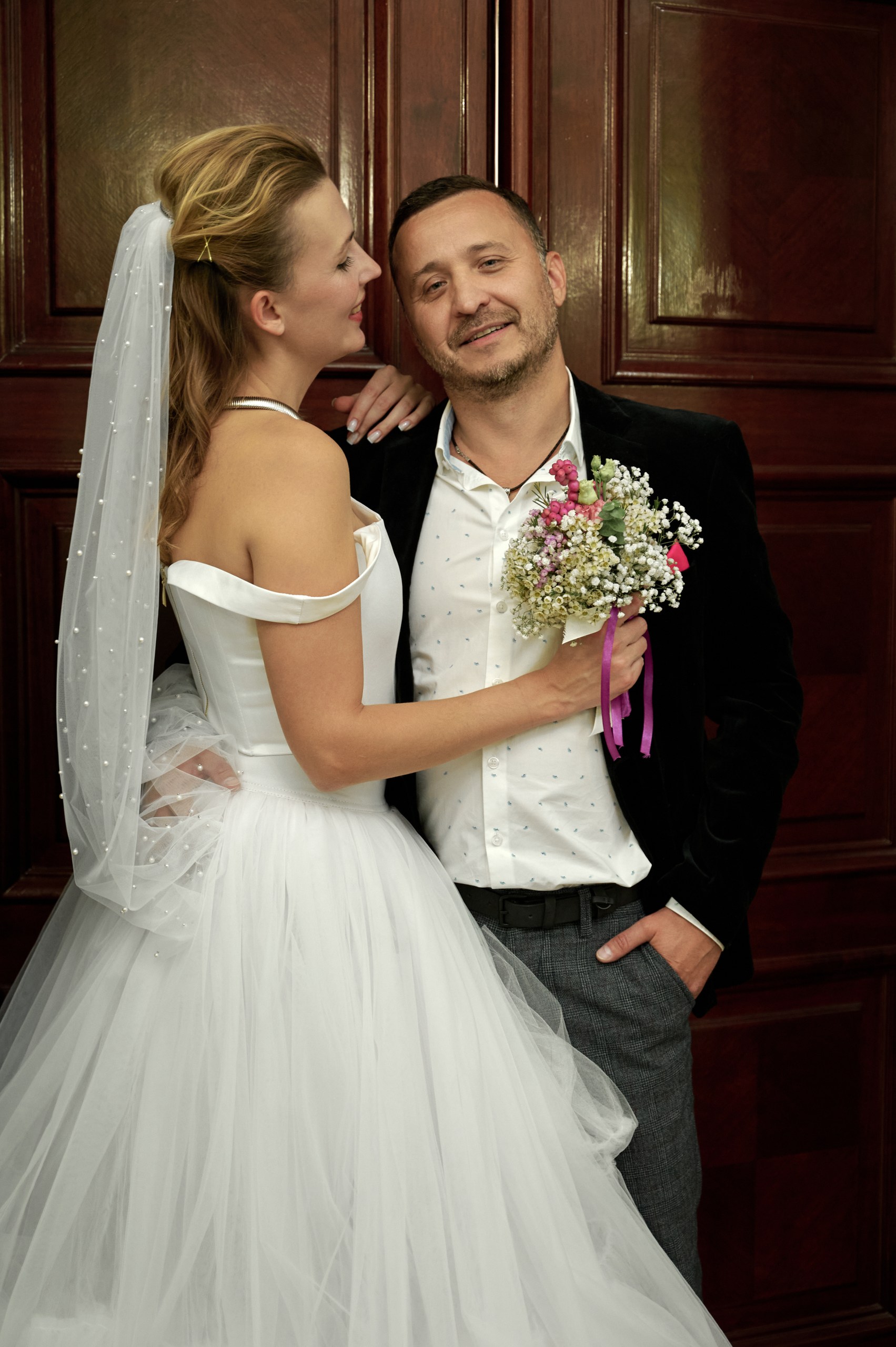 До репетиции желательно уже купить свадебное платье от этого чаще всего зависит выбор причёски.