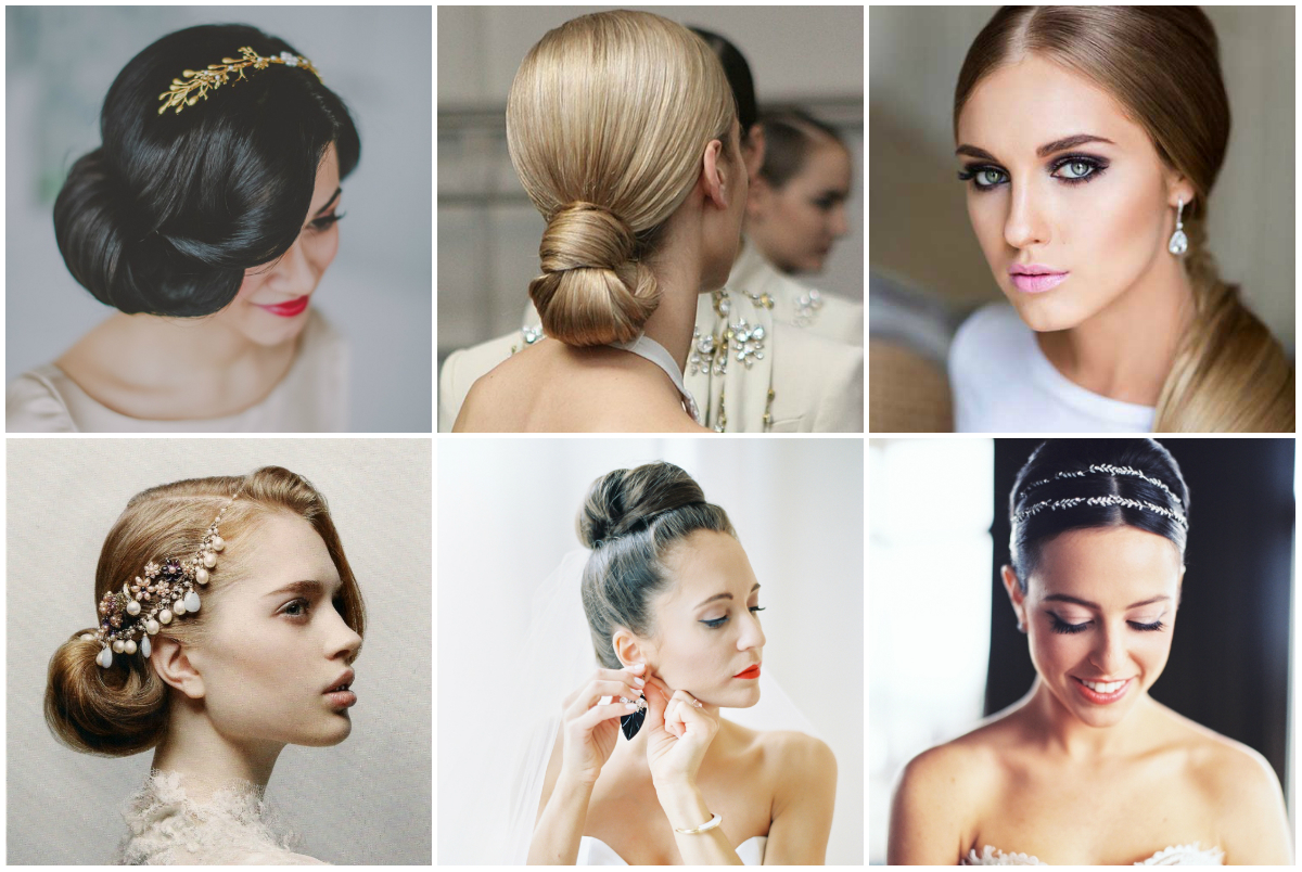 Аккуратно заколотые, блестящие, гладкие волосы — идеальное завершение элегантного свадебного платья в стиле гламур. Я нашла для вас несколько причесок, которые прекрасно дополнят этот образ.