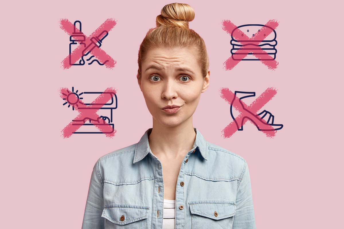Друзья порекомендовали новую фантастическую косметику? Превосходно! Я сама люблю такие испытания, но нанесение новой косметики на лицо и тело — одна из вещей, которую лучше не делать за неделю до свадьбы. Вы не знаете, хорошо ли воспримет его ваша кожа, или наоборот – в итоге возникнут раздражения или аллергия. За неделю до свадьбы избегайте всех новинок и доверьтесь проверенным продуктам в своей косметичке.